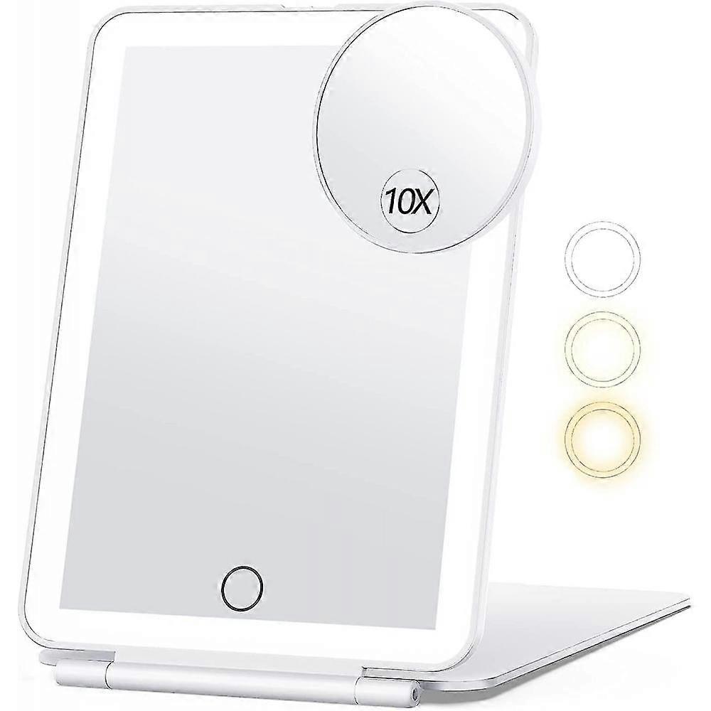 Travel Makeup Mirror With 10x Magnifying Mirror, Vanity Mirror With 80leds, 3 Color Lighting, Rechargeable 2000mah Batteries Portable IYB