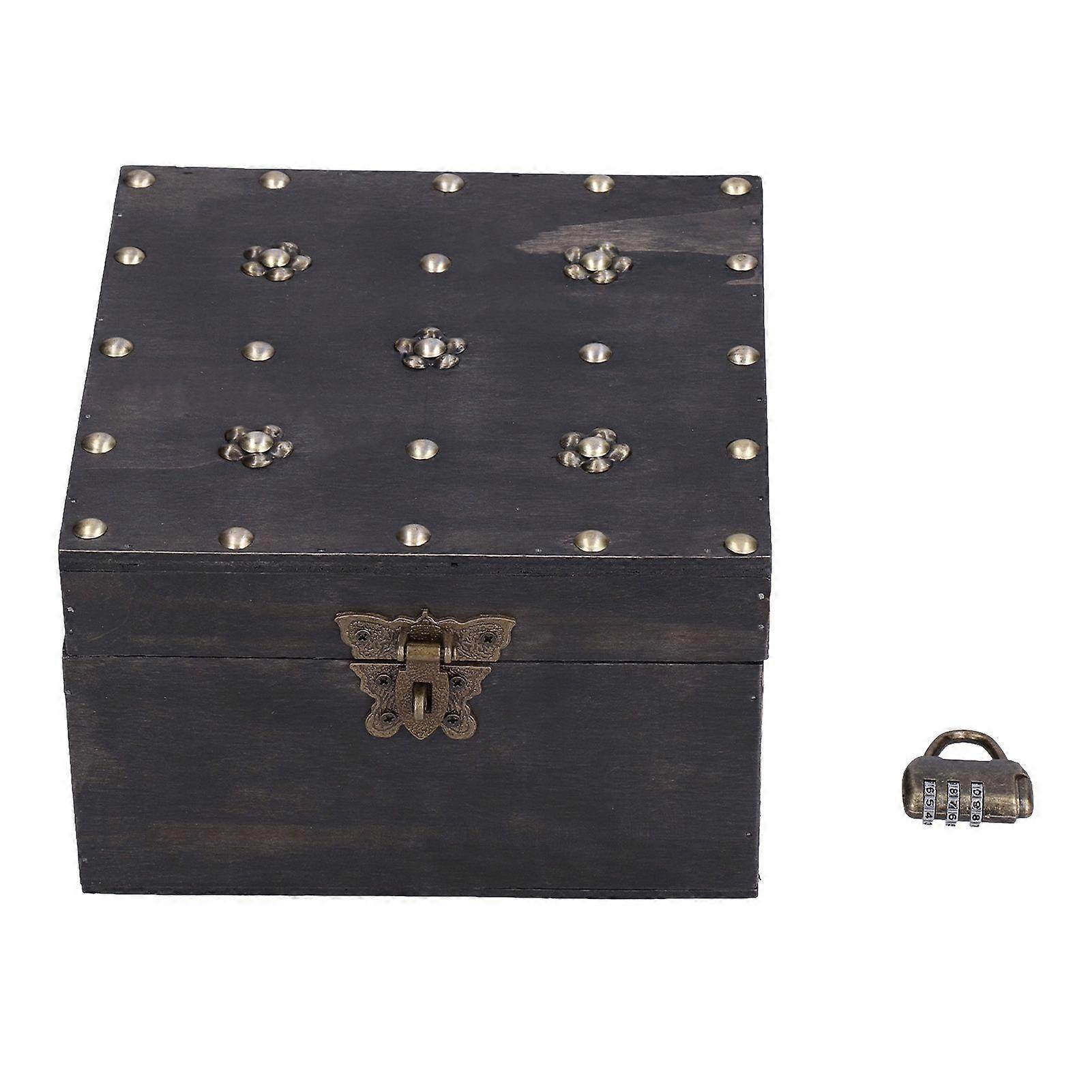 Treasure Props Storage Box with Password Lock Retro Wooden Storage Box for Home Living Room