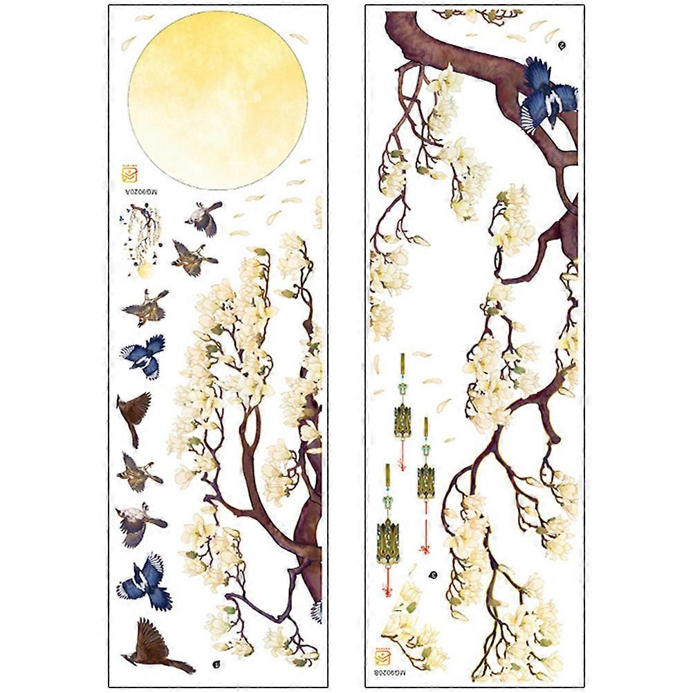 Tree Wall Stickers Chinese Style Home Decor Non-Damaging Rectangular Shape Multi-Colored 2Pack