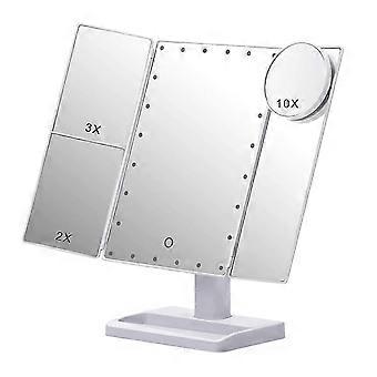 Trifold Makeup Mirror with 22 LED Lights,10X/3X/2X Magnification Portable Fold Lighted Table Desk Co
