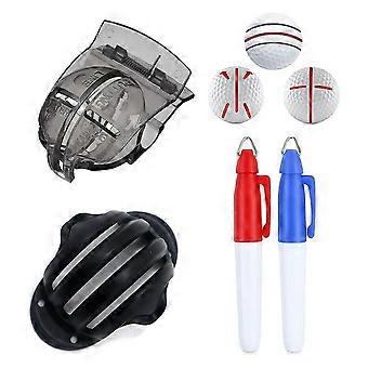 Triple Line Golf Ball Alignment Marker with 2 Pens and Stencil Tools