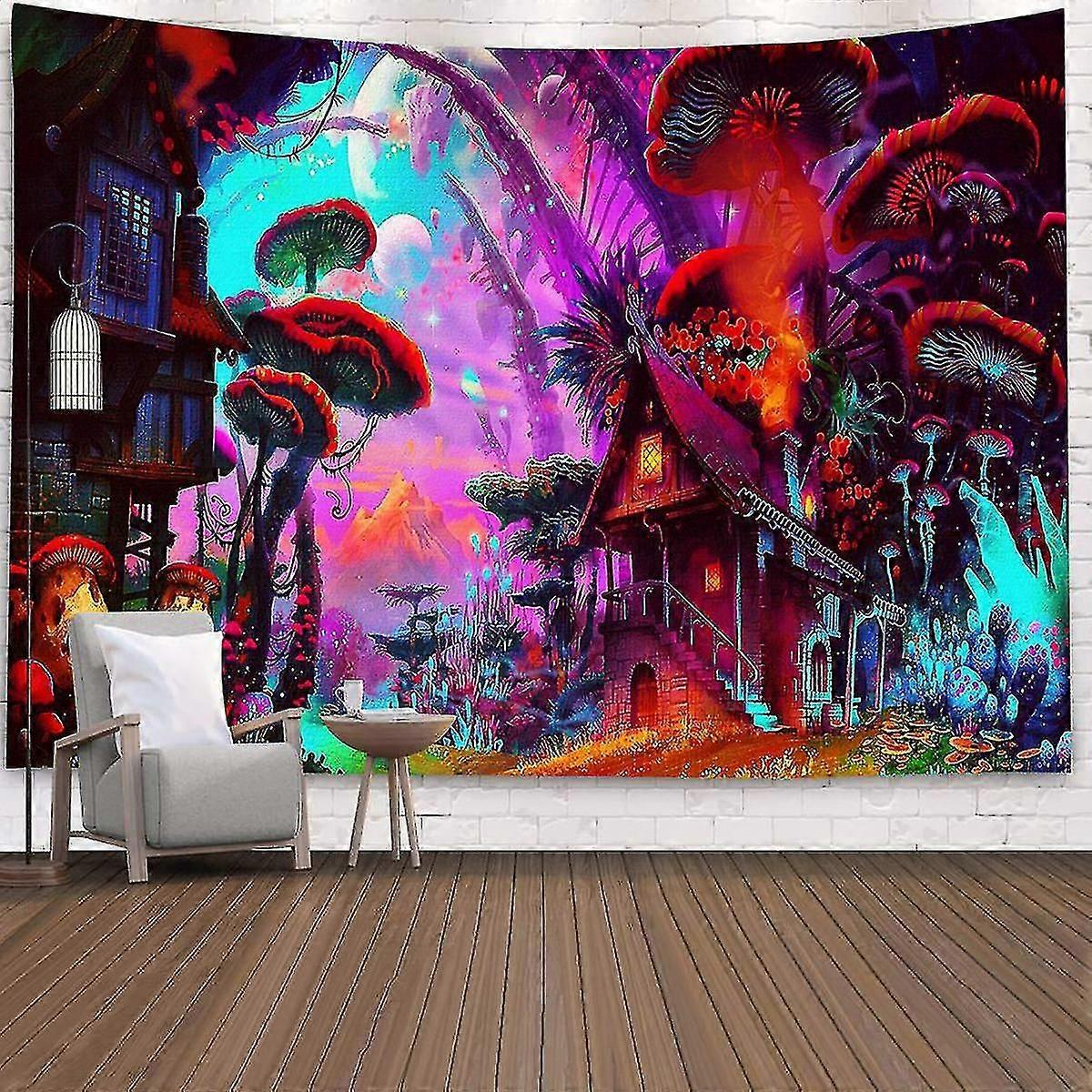 Trippy Mushroom Tapestry Wall Hanging Psychedelic Bedspread Decor