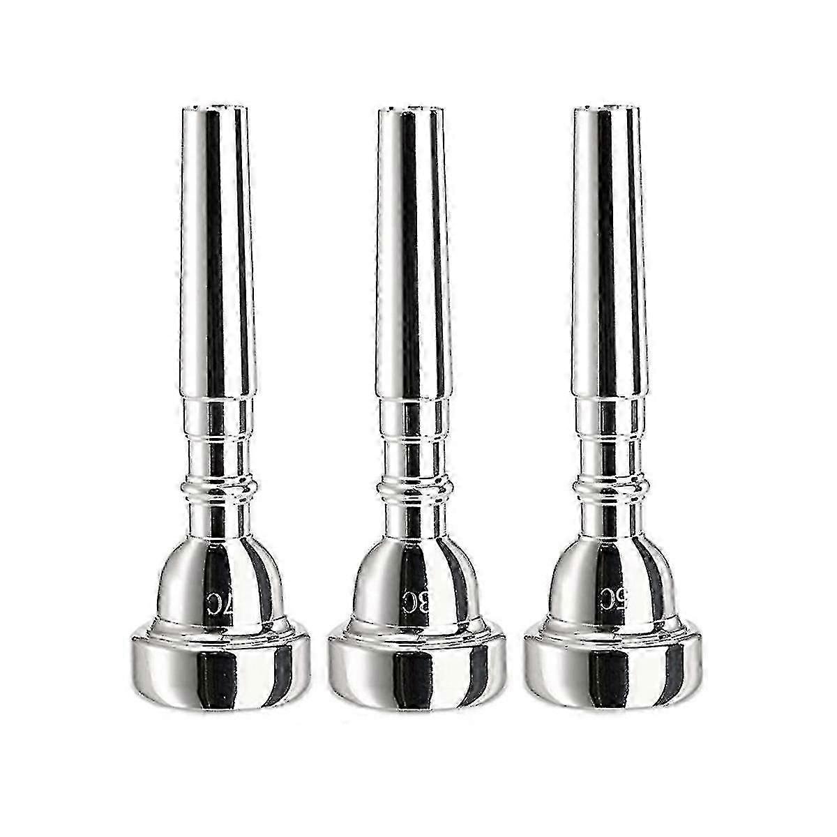 Trumpet Mouthpiece Set, Silver Plated, Sizes 7c, 5c, 3c for Beginners and Professionals