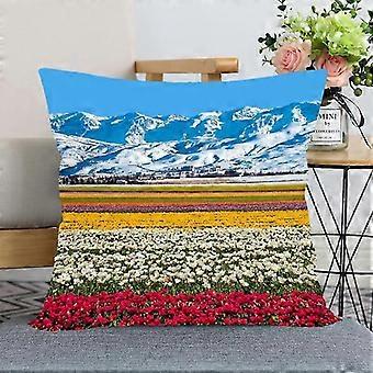 Tulip Flower Soft Decorative Pillowcase for Bedroom and Home Office, Square Design