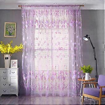Tulip Pattern Light-Filtering Sheer Curtain Divider for Bedroom,1x2.7m-Purple
