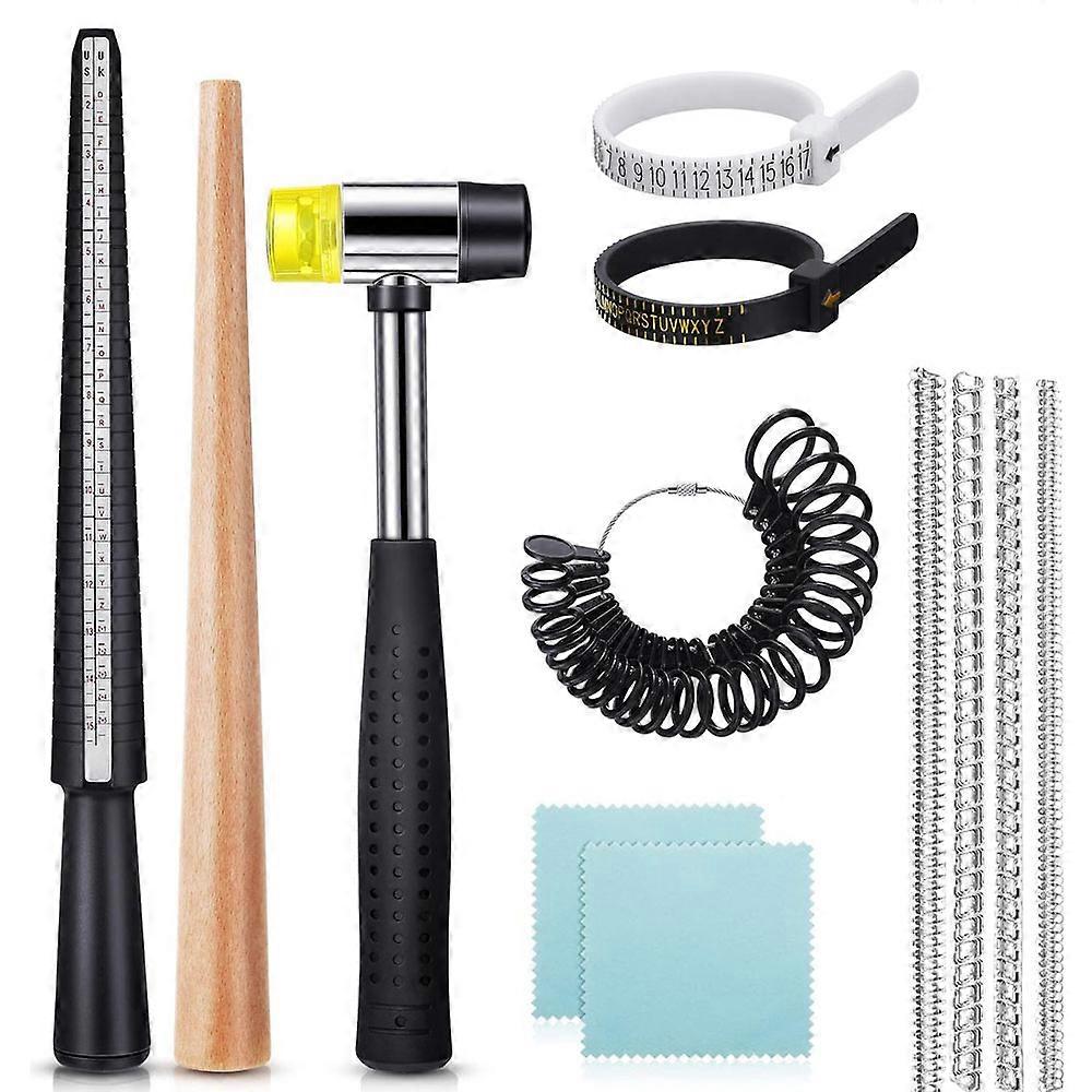 TUNQI 12-Piece Set Ring Sizing And Shaping Kit UK/US Plastic Ring Sticks Precision Ring Gauge Adjustable Ring Sizing 25mm Hamme