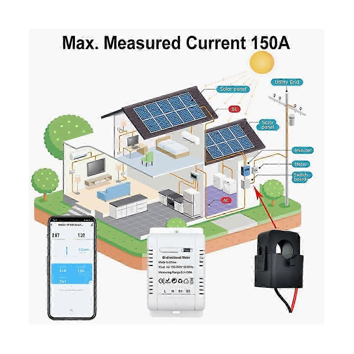 Tuya Solar PV Bidirectional WiFi Energy Meter with CT 150A Two Way Clamp Current Sensor Transformer