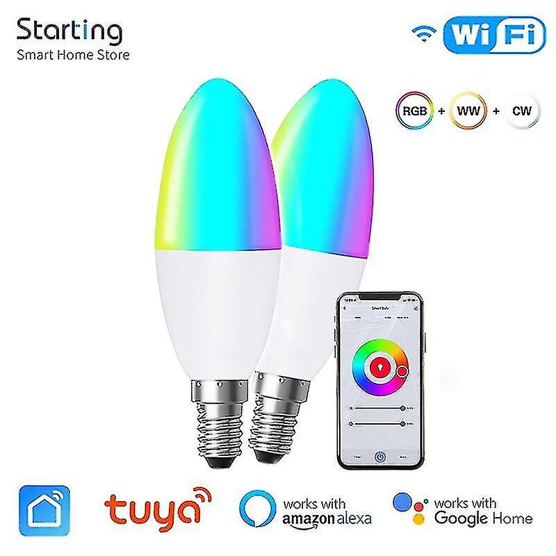 Tuya Wifi Smart Led Light Bulb E14 Rgb+cct 100-240v 5w Dimmable Lamp Voice