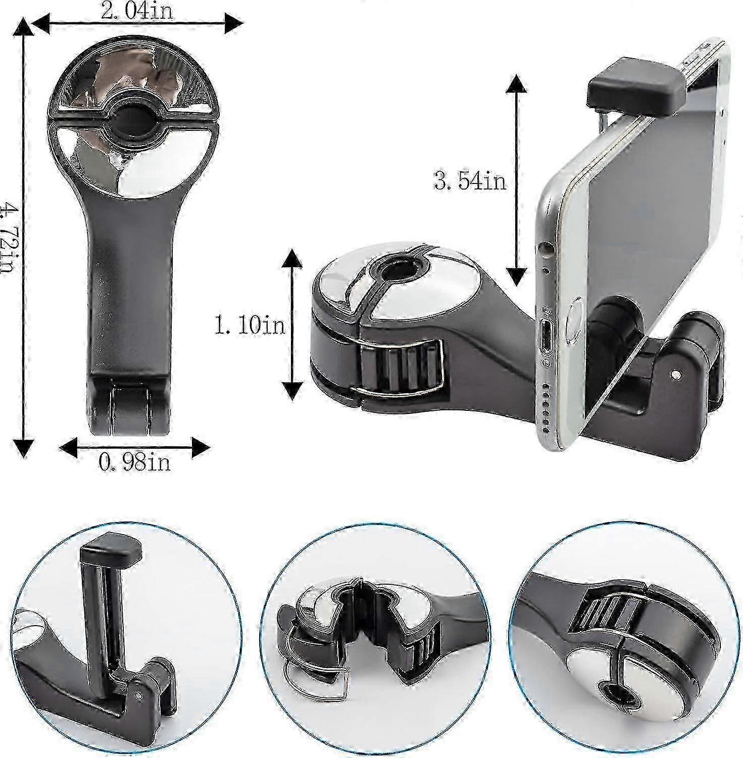 Two In One Car Headrest Hook, Universal Back Seat Hook With Cell Phone Holder, 360 Rotating Hook For Car Headrest Storage, Used For Ba