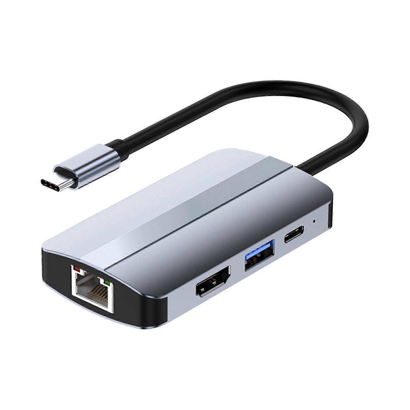 Type C Hub 6 in 1 HDMI-Compatible USB3.0 Splitter 5Gbps PD Rj45 Lan HUB Docking
