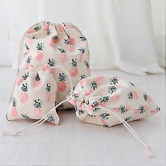 TZ 3Pcs Set Pineapple Canvas Drawstring Bags Reusable Storage Bag Home Travel Organizer Sort Pocket