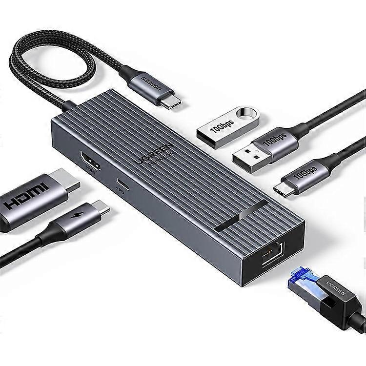 UGREEN 45364 6-in-1 USB-C Hub Gigabit Ethernet 4K 60Hz HD 100W PD Charging 10Gbps Data Transfer Adapter