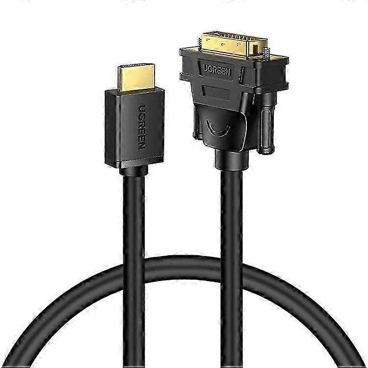 Bidirectional HDMI to DVI cable connects HDMI-equipped source devices such as laptops, desktops, Blu-rays, for Xbox 360, for Xbox One, for PS3, for PS4, for Roku, for Wii, DVDs, and set-top boxes to DVI-equipped HDTVs, monitors, projectors instruments or connect a DVI-equipped source device to an HDMI-capable device. Supports 1080P video resolutions: HDMI DVI-D cable is fully compatible with all HDTV formats, supported resolutions: 800x600, 1024x768, 1280x1024, 1600x1200, 1920x1200 and 1080P Double shielding: aluminum foil and braid ensure stable signal transmission between devices prevent electromagnetic interference (EMI) and radio frequency interference (RFI) Superior Construction: Gold-plated connectors and molded strain relief for durability to withstand multiple plugs and unplugs finger-tight screws for secure DVI connections Universal Compatibility: Supports all HDMI or DVI-D24and1 devices, also supports DVI-I 24and5 devices Specification: Brand: UGREEN Name: HDMI to DVI cable Model: HD106 Shielding layer: ground wire and aluminum foil and braided mesh Resolution: Support 1080P or 60Hz Core material: tinned copper Cover material: PVC Interface material: gold plated Note: DVI does not support audio output, so a separate audio cable (not included) is required to transmit sound.