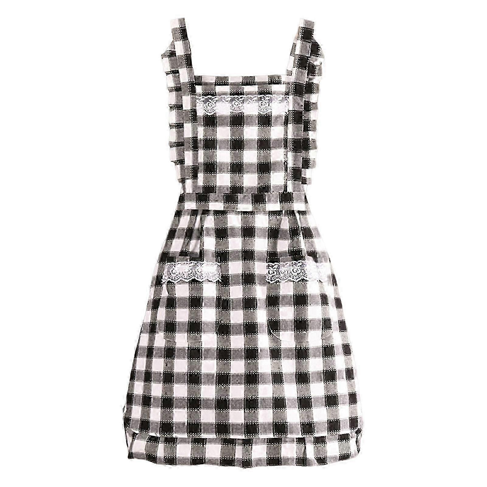 Unisex Sleeveless Baking Apron with Plaid Print and Lace Decor, Double Layer, Anti-Oil, Featuring Two Pockets