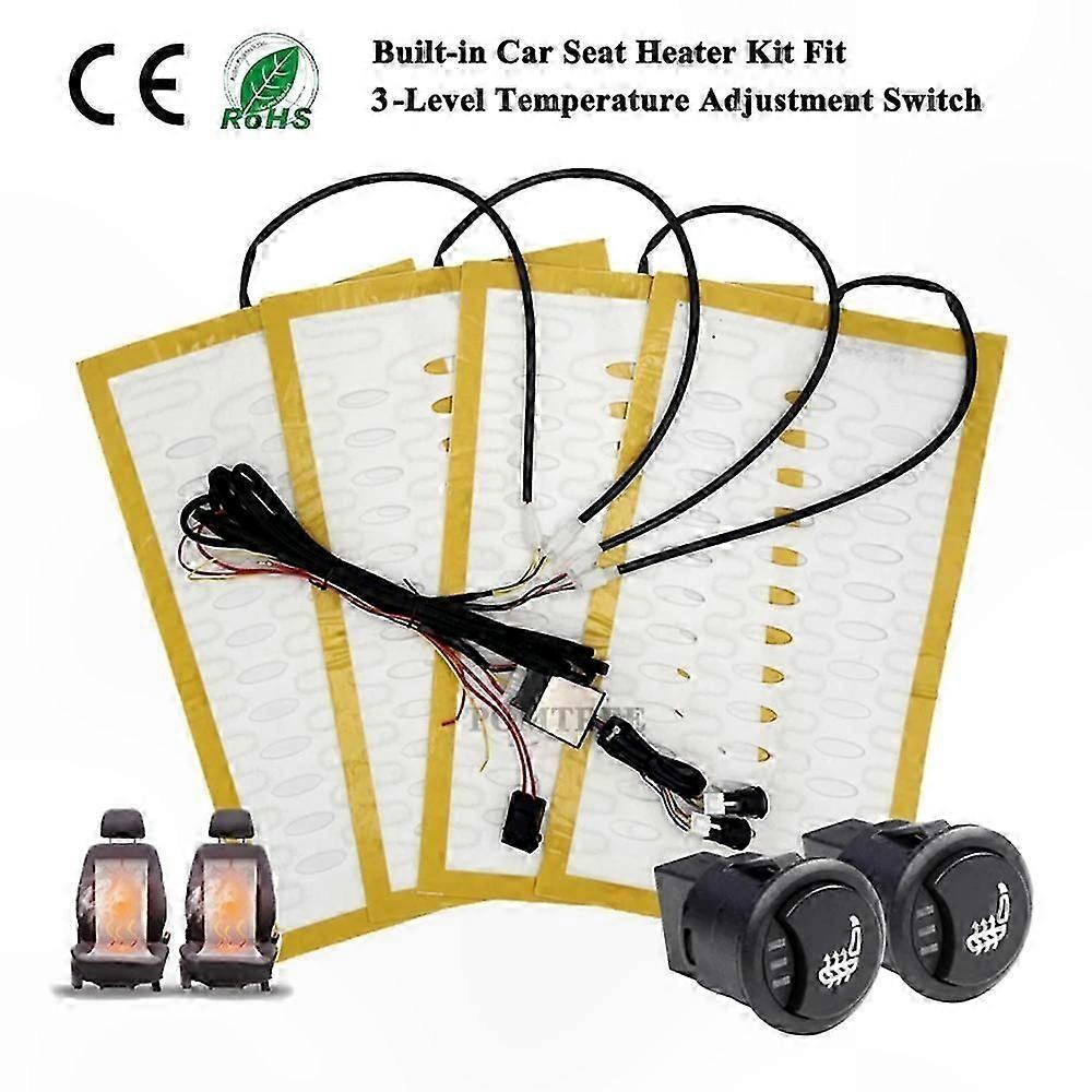 NEW DC 12V Built-in Car Seat Heater Kit for 2 Seats Universal Alloy Wire Fast Heating Pads with 3-Level Control Switch for Car Seats Features: - A comfortable essential for driving in winter. Designed to be installed between the seat cover and cushion. - Helps reduce reliance on air conditioning, improving fuel efficiency and reducing driver fatigue caused by cold air. - Made of alloy wire material for fast heating, durable performance, and resistance to corrosion and breakage. - Heating pads can be trimmed horizontally to fit various seat sizes. - Includes two heating pads per seat: one for the backrest and one for the seat bottom. Comes with adhesive for easy installation. Specifications: - Material: Alloy Wire - Dimensions: Approx. 48cm x 27cm (18.9" x 10.6") - Wire Length: 2.3m (90.5") - Color: White - Power Rating: DC 12V, 27W per pad - Temperature Range: 30C to 55C (86F to 131F) Fitment: - Compatible with most vehicles Notes: - Verify that your seat covers are removable before purchase. - Professional installation is recommended. - Do not use on seats where the cover is fused to the foam. Package Includes: - 4 Heating Pads (2 for front seats) - 1 Main Control Switch Box (3-level control) - 1 Wiring Harness with Fuse (10A) - Installation Accessories Wiring Details: - Red main wire: Positive connection - Black main wire: Ground connection - Yellow auxiliary wire: Connects to daytime running light circuit (if applicable) - Red auxiliary wire: Connects to ACC/ignition power source - Switch control box for managing heating across 4 pads (2 seats)
