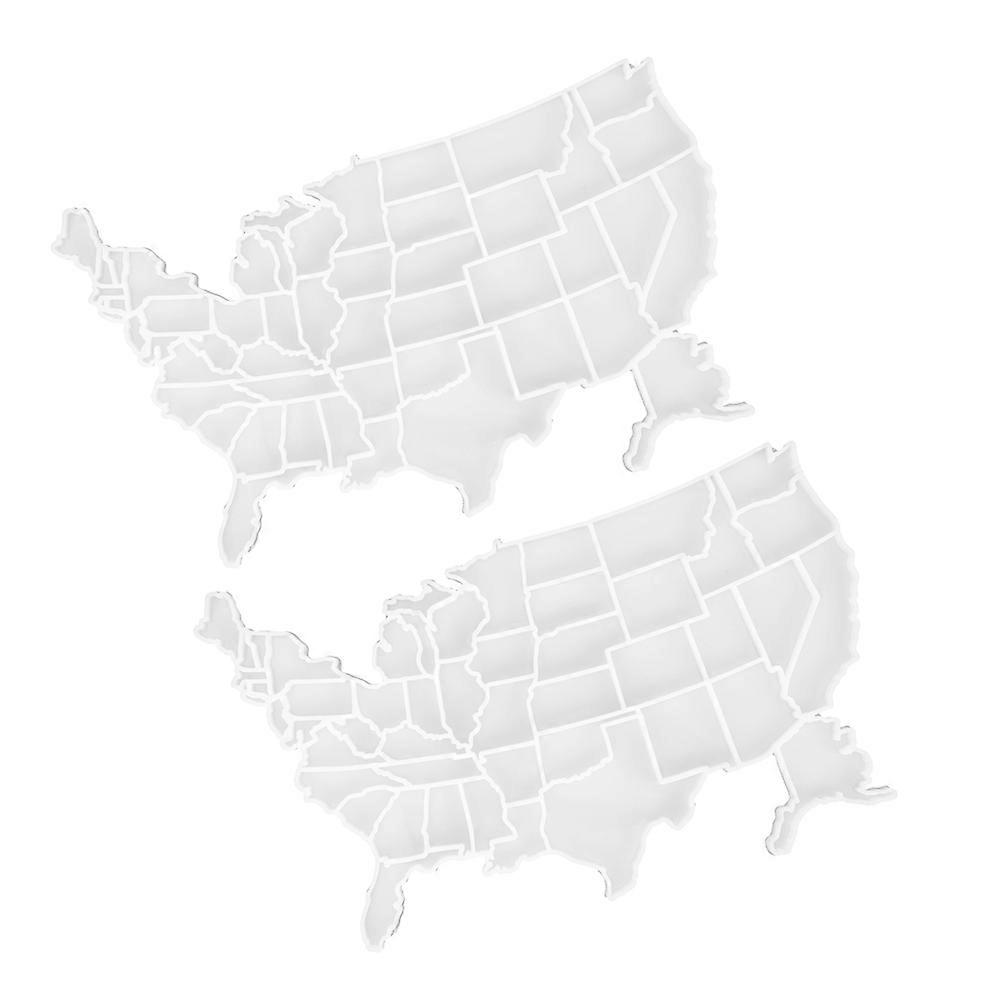 USA Map Silicone Mold for DIY Use White Color 2pcs Set Creates Durable Puzzles and Cake Decorations