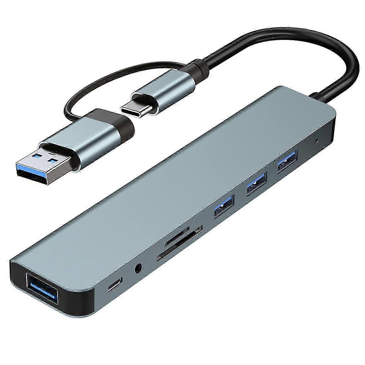 USB C Adapter 8 in 1, USB-C Hub with 4USB A, USB-C Data Ports, SD/TF Card Reader, 3.5mm Headphone Jack, USB-C Hub Multiport Adapter for Smartphones, L
