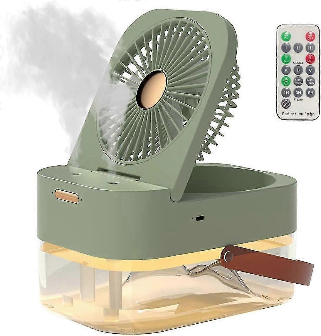 USB Desk Fan with Humidifying Spray and Night Light, Desktop Fan with Remote control, Moisturisable Desk Fan,Cooling Fan (green - Remote control)