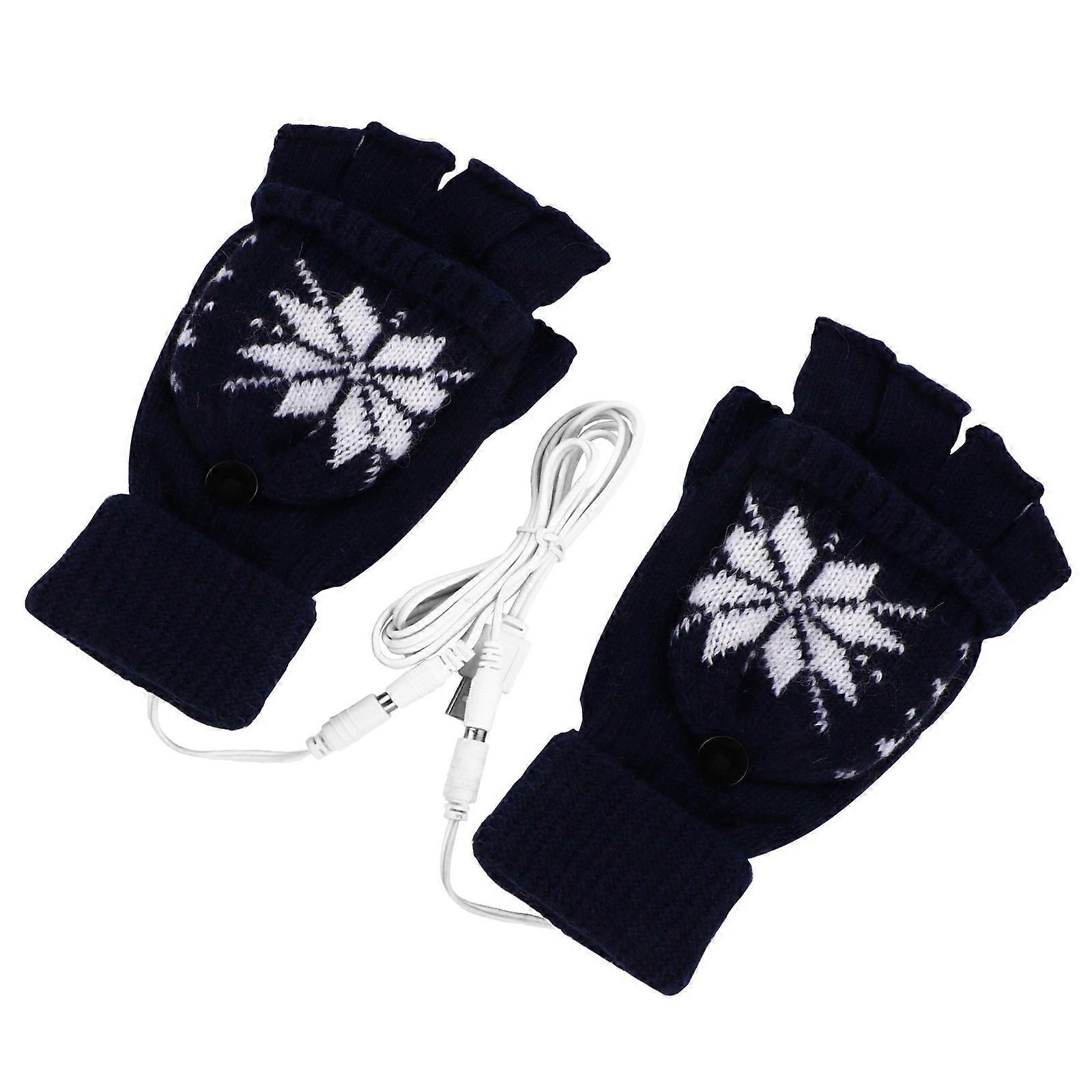USB Gloves Half Finger Warm Knitted Gloves for Protection 2Pairs Blue