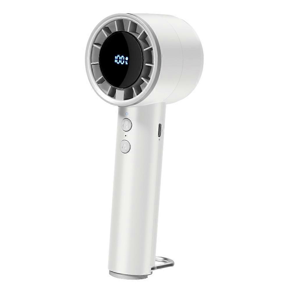 USB Rechargeable Handheld Fan with Ice Cooling/Digital Display/Turbo Speed/5 Adjustable Speeds - Whi