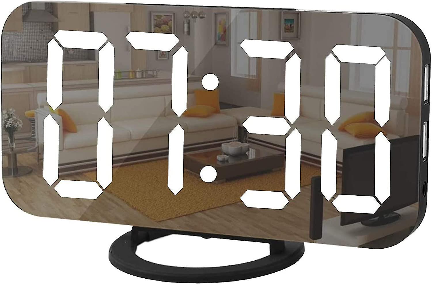 Digital Alarm Clock,mirror Surface Led Electronic Clocks,with Usb Charger,snooze Model, Auto/custom Brightness,for Office Table Bedroom Nightstand(bla