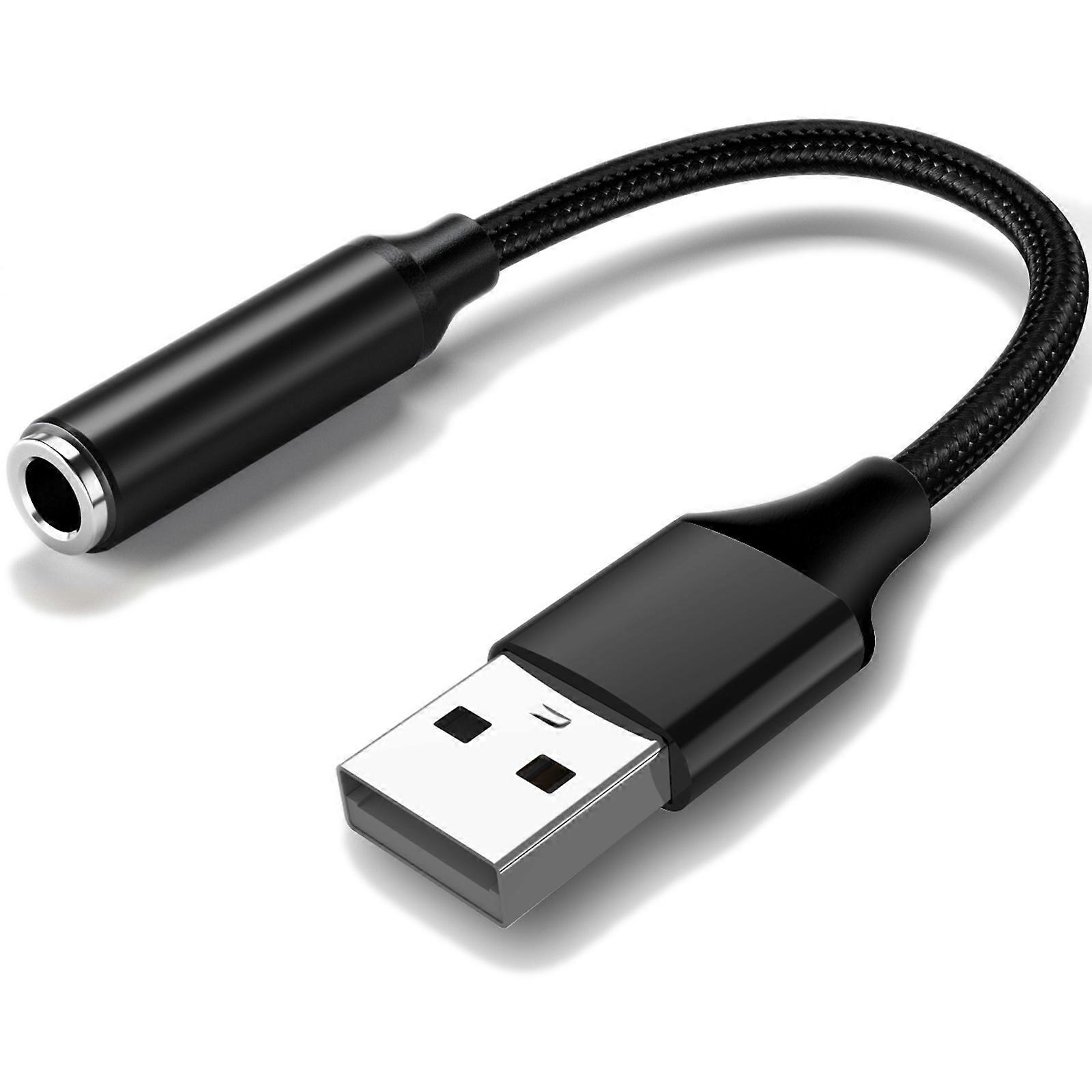 USB To 3.5mm Auxiliary Cable Durability Braided Wire For HiFi Music Headphones Speakers Black