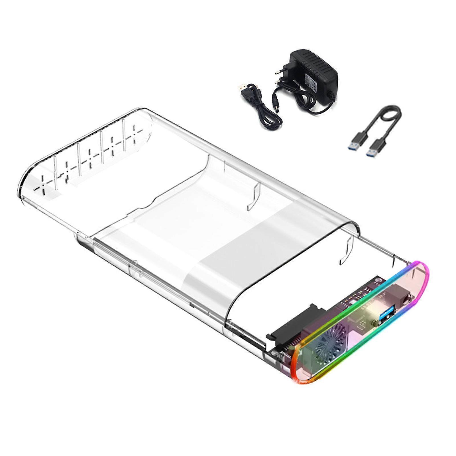 USB3.0 External Hard Disk Case Transparent Design Color Light Lighting Supports 2.5/3.5inch Hard Disk Sliding Cover Multicolor