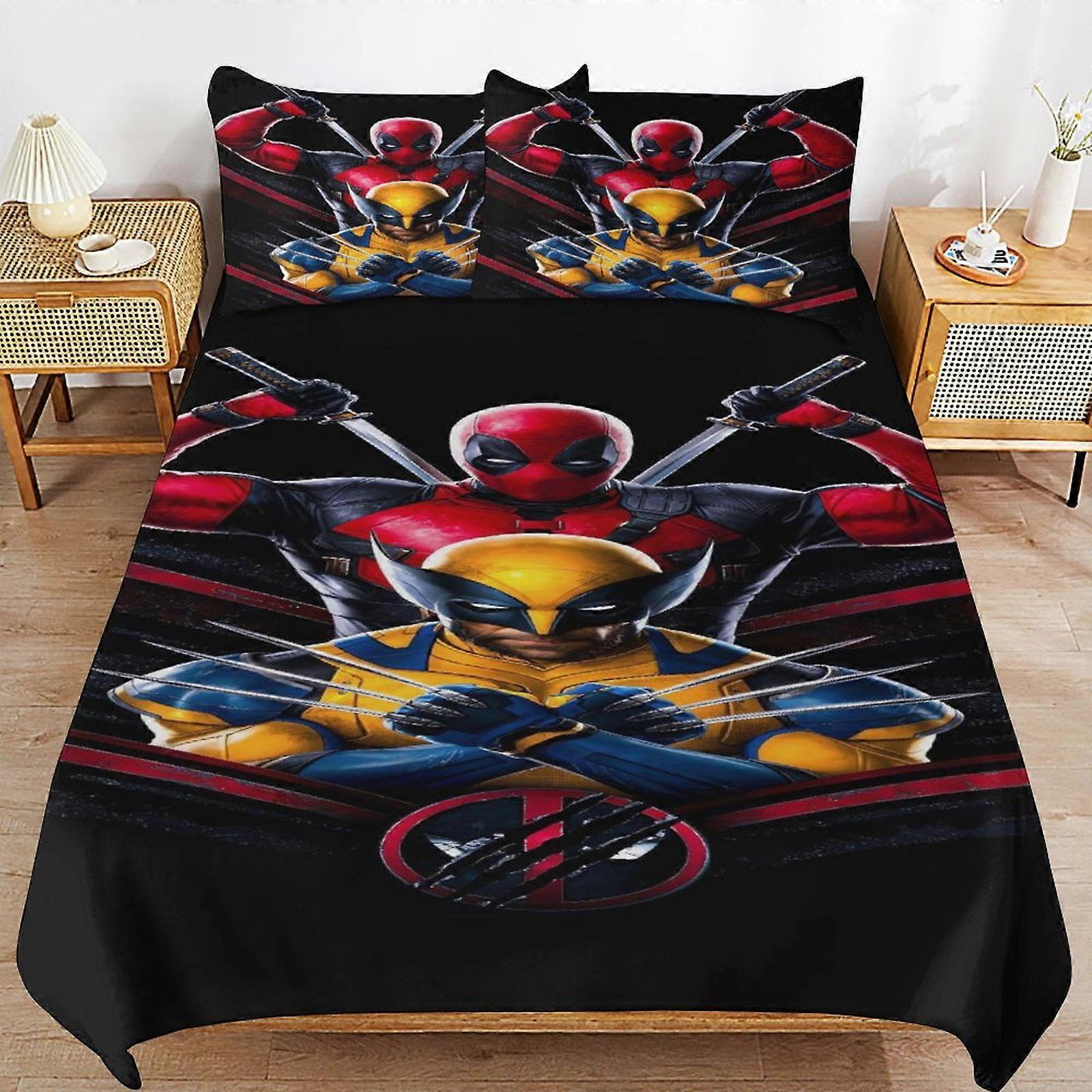 v4361 Bed Sheets Bedding Deadpoo-l Dead-pool 3 PCS Comfort Set with 2 Pillowcases,Deadpoo-l Dead-pool Bedding Set Sheet Set for Kids Adults,All Seaso