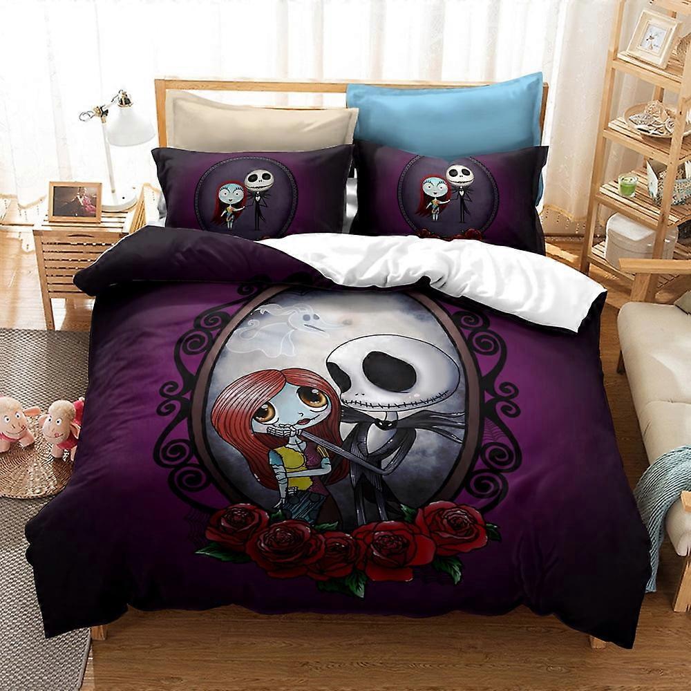 v4884 Bed Sheets Bedding The Nightmare_Before_Christmas 3 Pcs Comforter Set with 2 Pillowcases,Jack_Skellington Sall_y Bedding Set Sheet Set for Kids