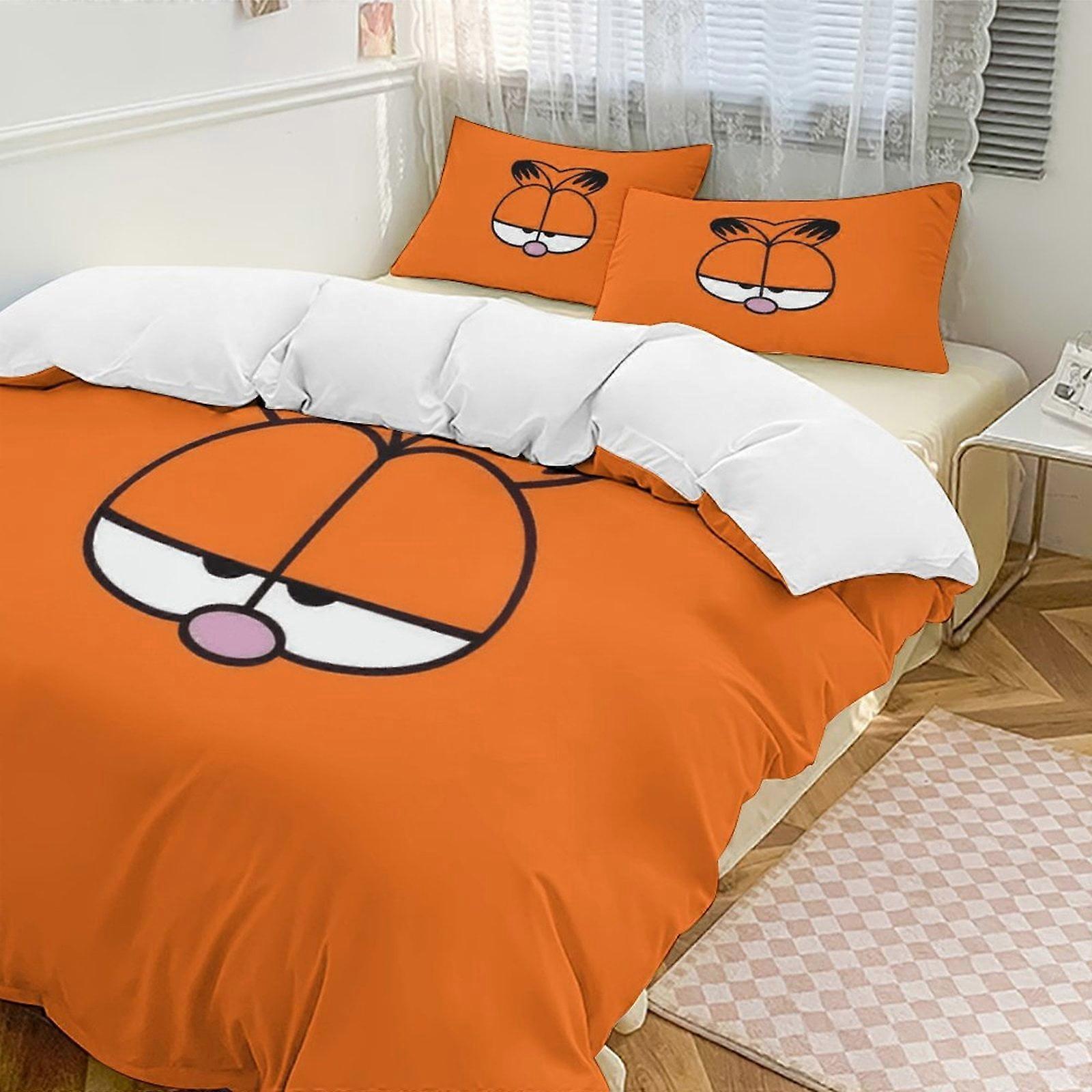 v7405 Bed Sheets Bedding Orange Red Garfield Comforter Set Soft 3 Pcs Twin Bedding Sets Thicken for All Season, 1 Comforter 2 Pillow Shams Bed Shee