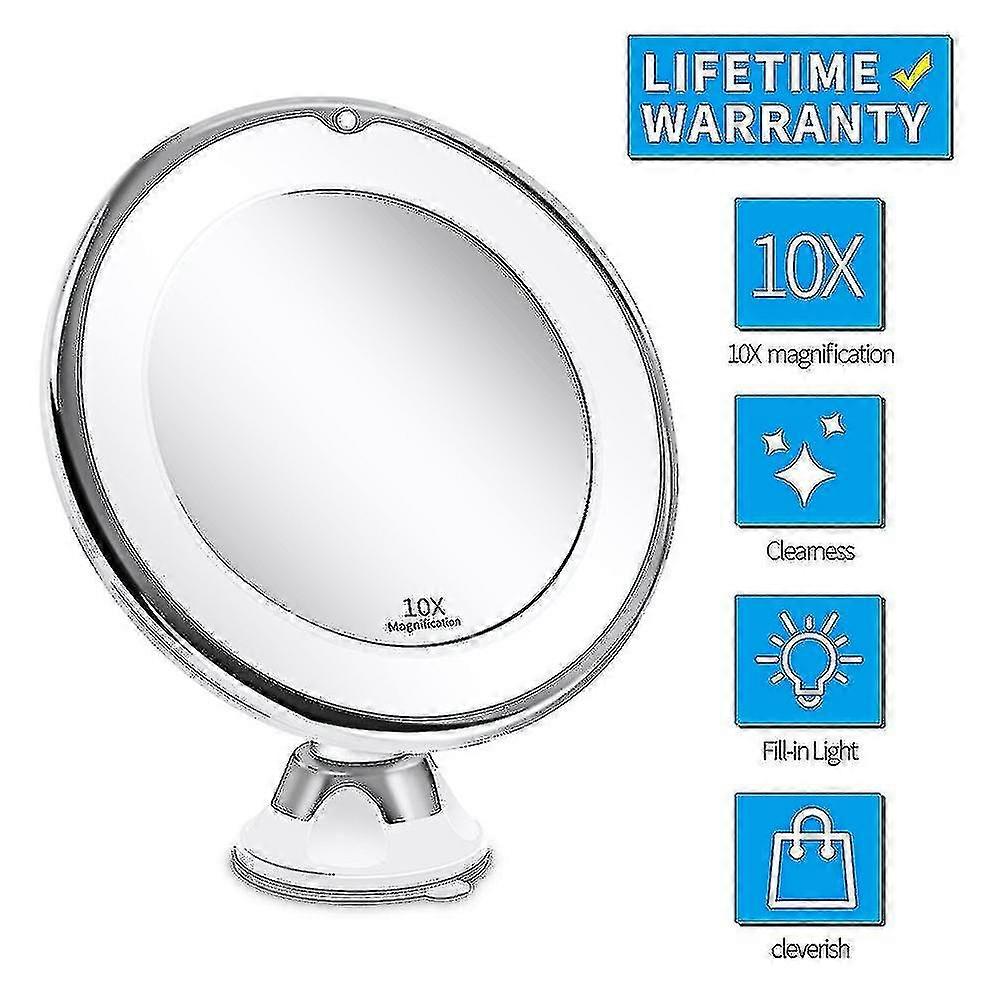 Vanity Mirror With 10x Magnification And Led Light, Vanity Mirror With Adjustable Ball Joint And Suction Cup, Rechargeable
