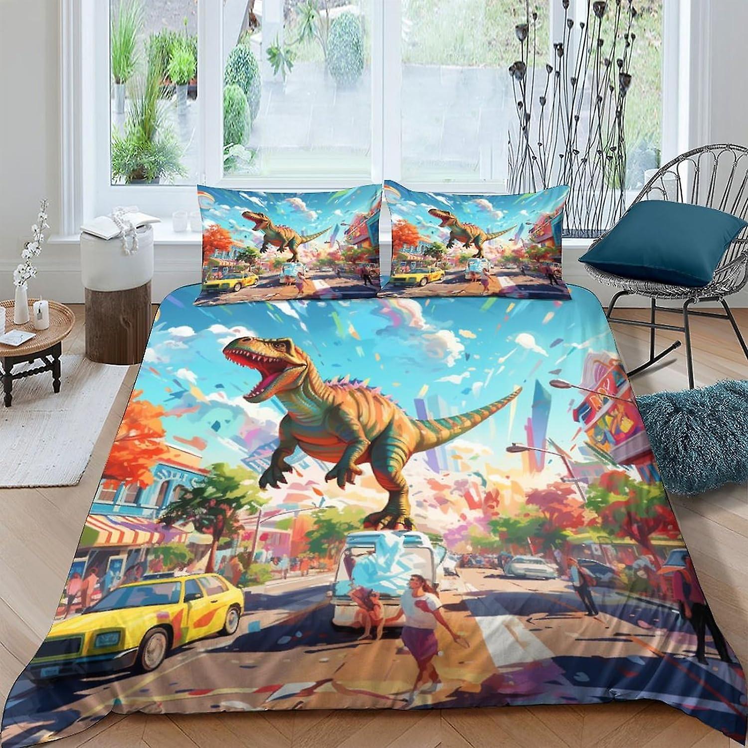 VCLUST Dinosaur World 3D Printed Duvet Cover Set Soft Microfiber Bedding Set for Adults Teenager Kids 3 Pieces With Pillow Cases With Zipper Reptile Q