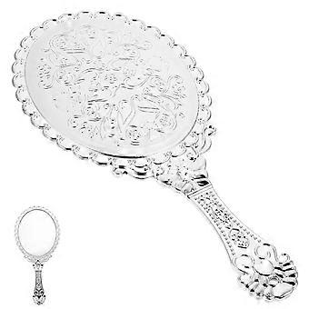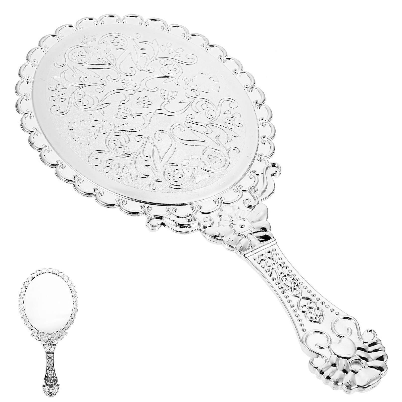 Vintage Handheld Mirror with Ergonomic Handle, Compact Travel Makeup Mirror with Embossed Pattern for Women