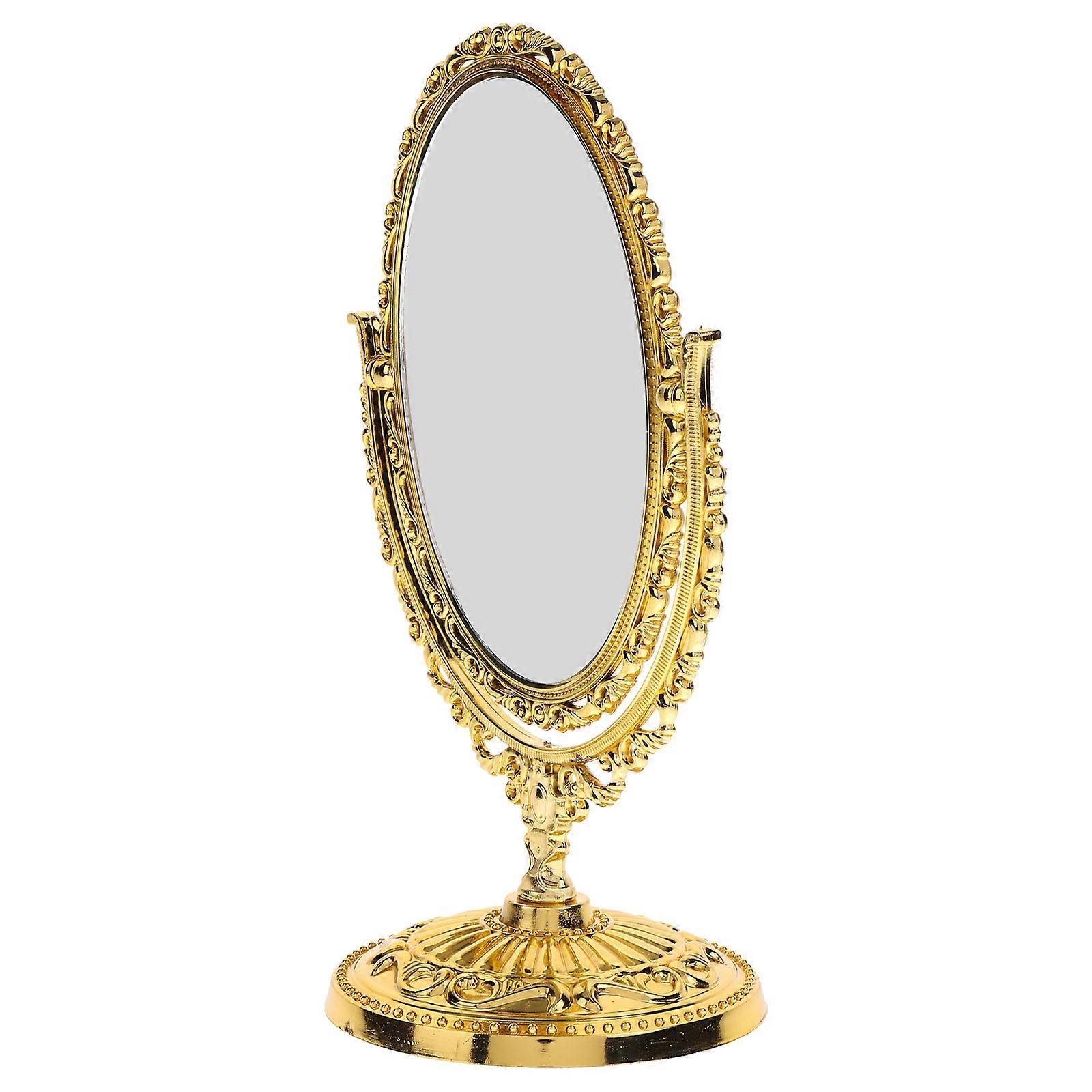 Vintage Oval Swivel Vanity Mirror Retro Double Sided Makeup Mirror for Dressing Table Rotating High Definition Reflection Decor Gold