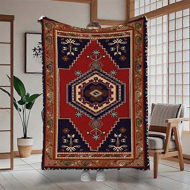 Vintage Persian Pattern Fleece Blanket - Soft Polyester Throw for Bed, Suitable for Sofa, Travel, Camping, Nap, Home Dec-LKJAS164