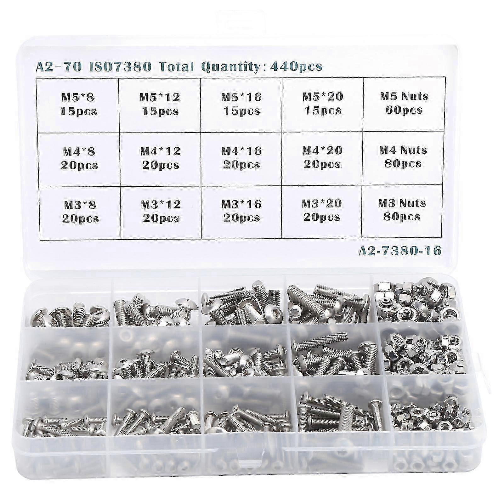 w 440PCS M3/M4/M5 Hex Socket Screw with Nut Assortment Set Stainless Steel Fastener Hardware