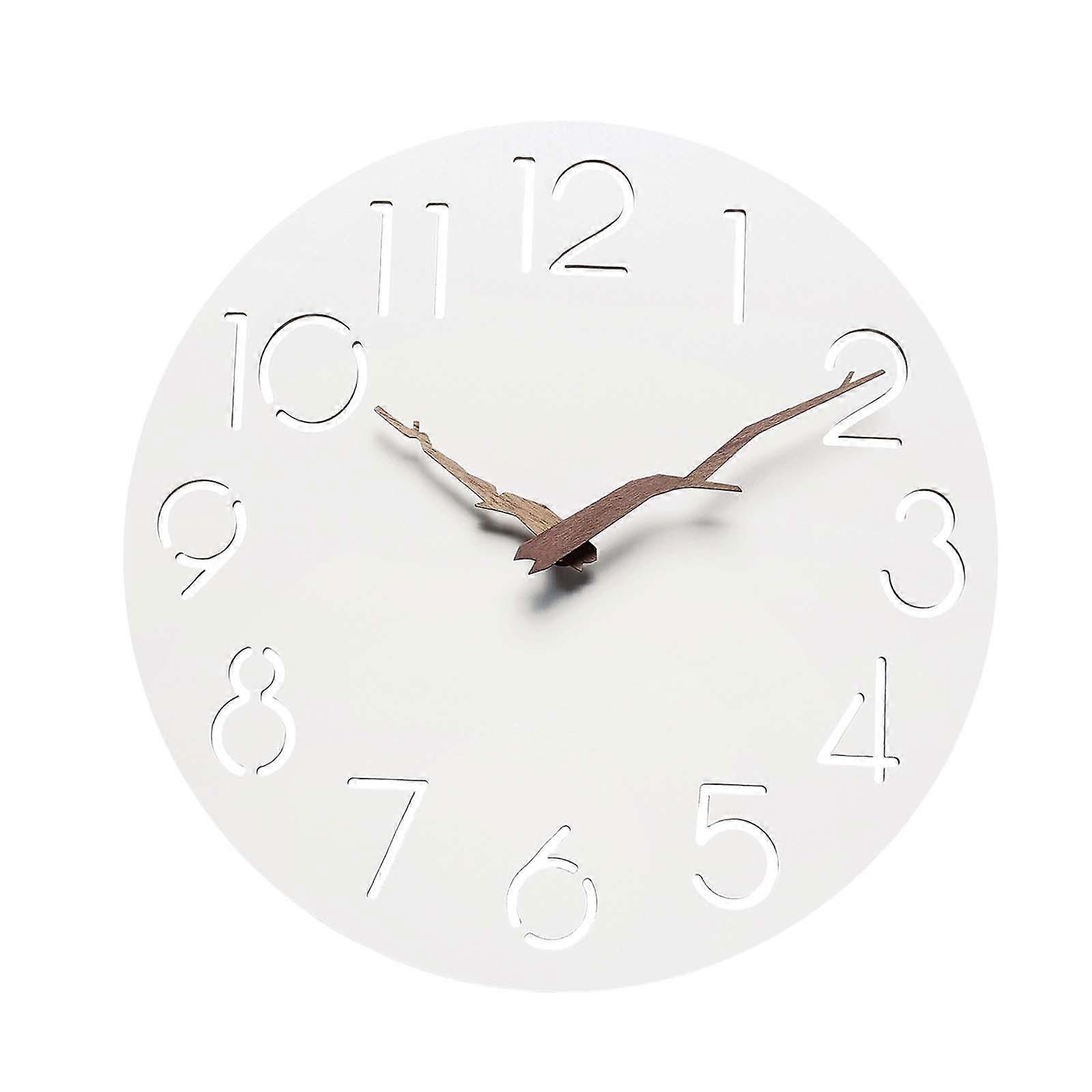 Wall Clock Modern Mute Round Decorative Clock for Study Room Cafe Bar Office White