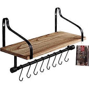 Wall-mounted coffee shelf with 8 hooks, floating rustic kitchen shelf for cups, coffee bar, wall decoration