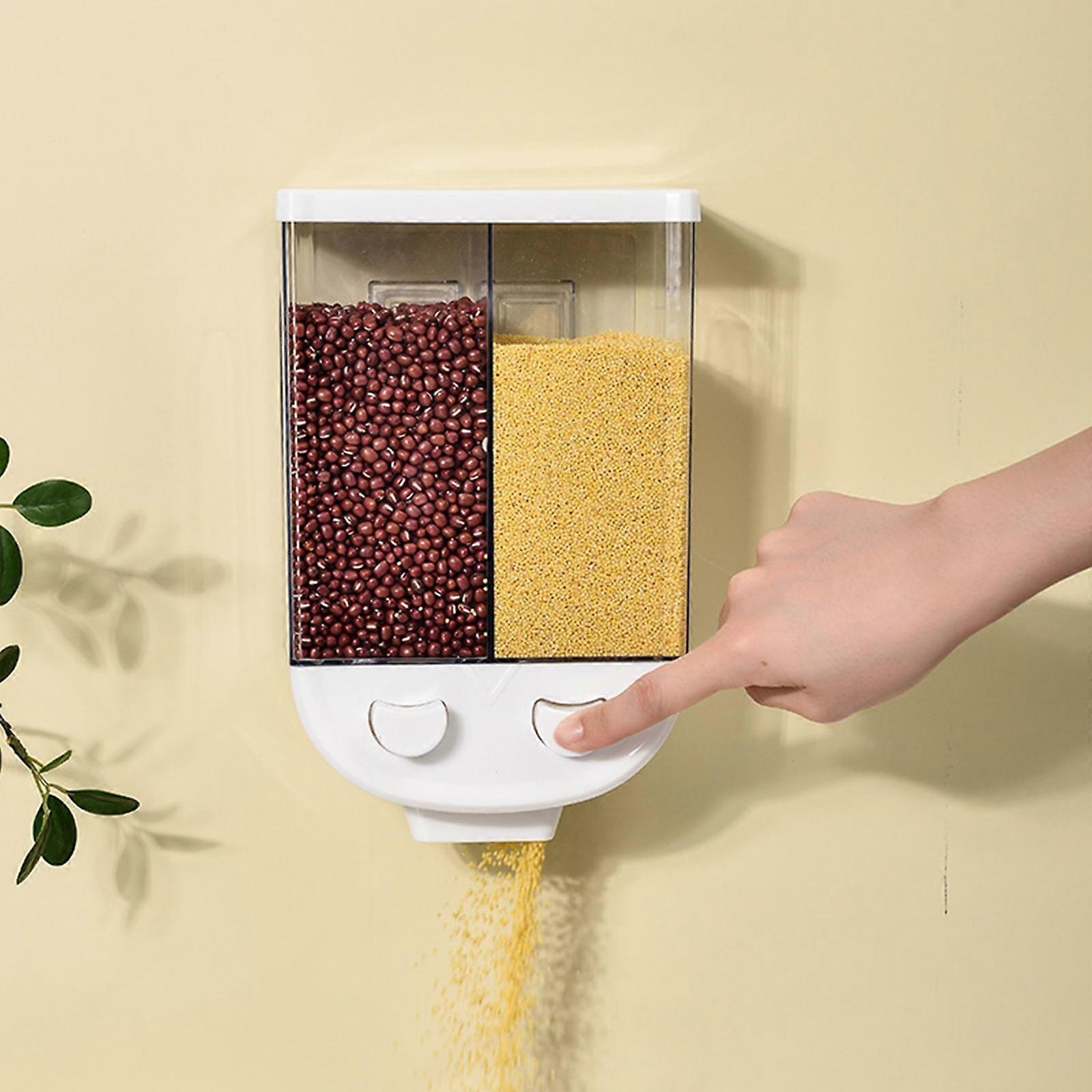 Wall Mounted Dry Food Dispenser Free Control Output 2-Grid Space Saving Convenient Bulk Organizer Box for Candy Nuts Beans Rice Kitchen