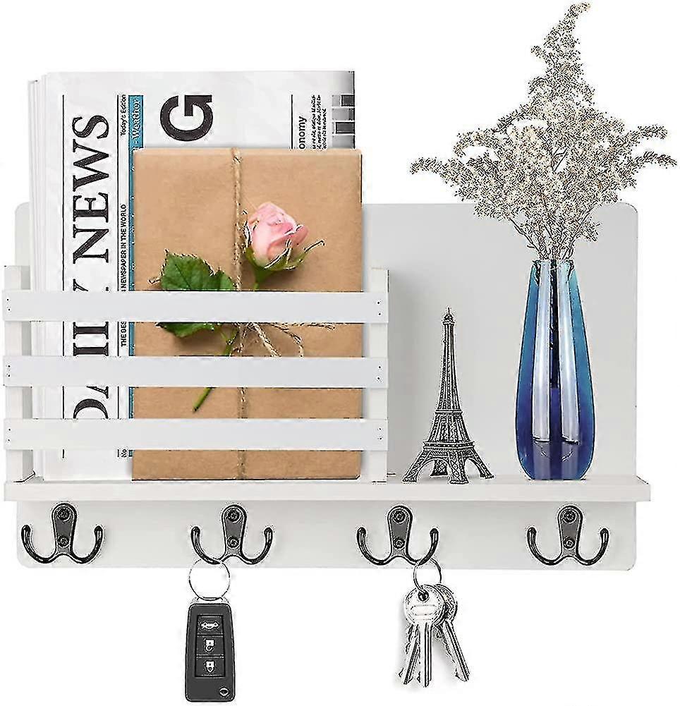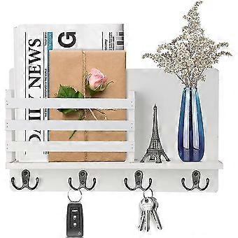 Wall Stand Wood For Key Holder Organizer With 4 Hooks, Bookshelf Wood, Key Holder