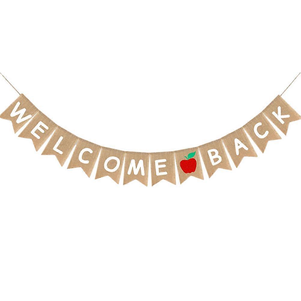 Welcome Back Burlap Banner Triangle Flags Stringed Banner Retro Style School Celebration Decoration 200 x 13 x 17 cm 1Set
