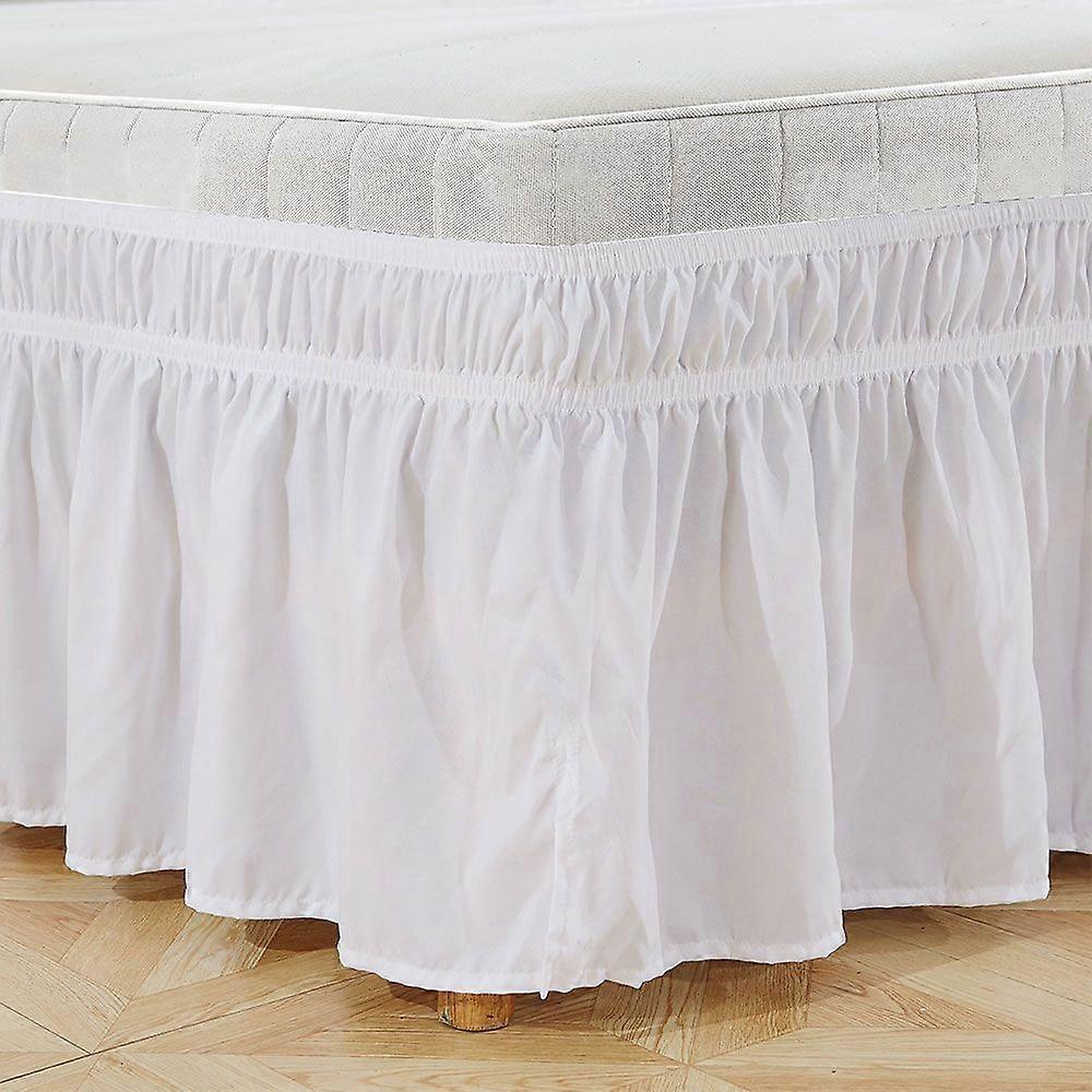 White Bed Skirt Draped Ruffles Solid Color Adjustable Elastic Waistband Easy Installation Wrinkle and Fade Resistant