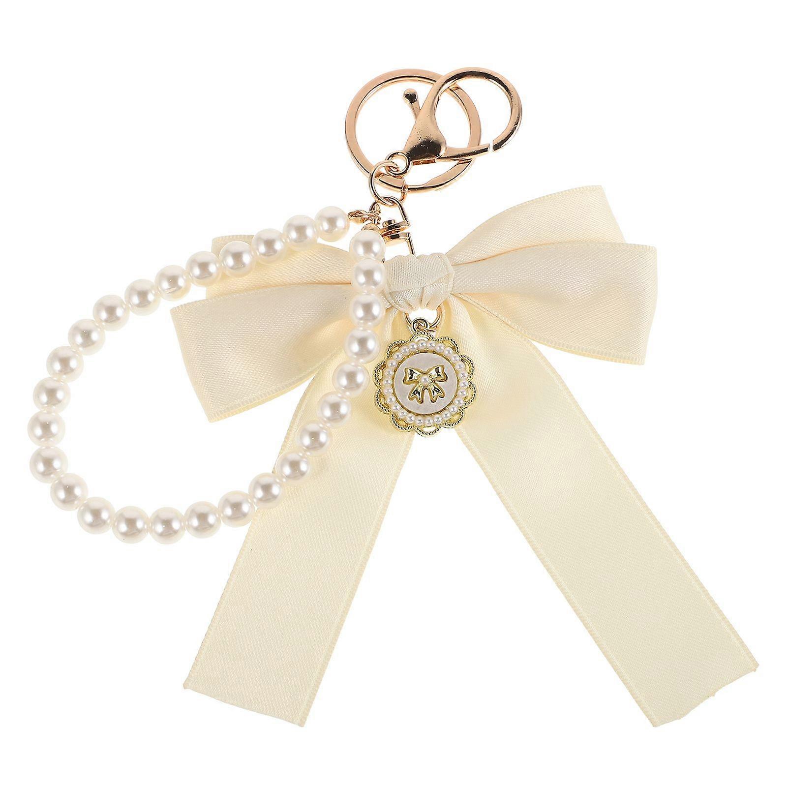 White Bowknot Keychain with Elegant Pearl Charm Girly Accessory Lovely Keychain for Car Keys Backpacks Purses Handbag Decor
