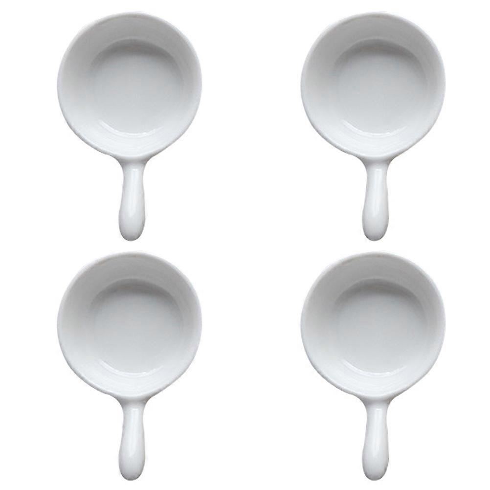 White Ceramic Sauce Dipping Dish Set with Handle Compact Lightweight Bowls for Appetizers, Ketchup, Salad Dressing and More (4pcs)