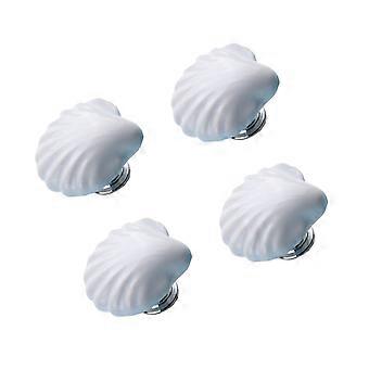 White Ceramic Shell Pull Handles for Home Use Durable Creative Design for Cabinet Drawer 4 Pieces