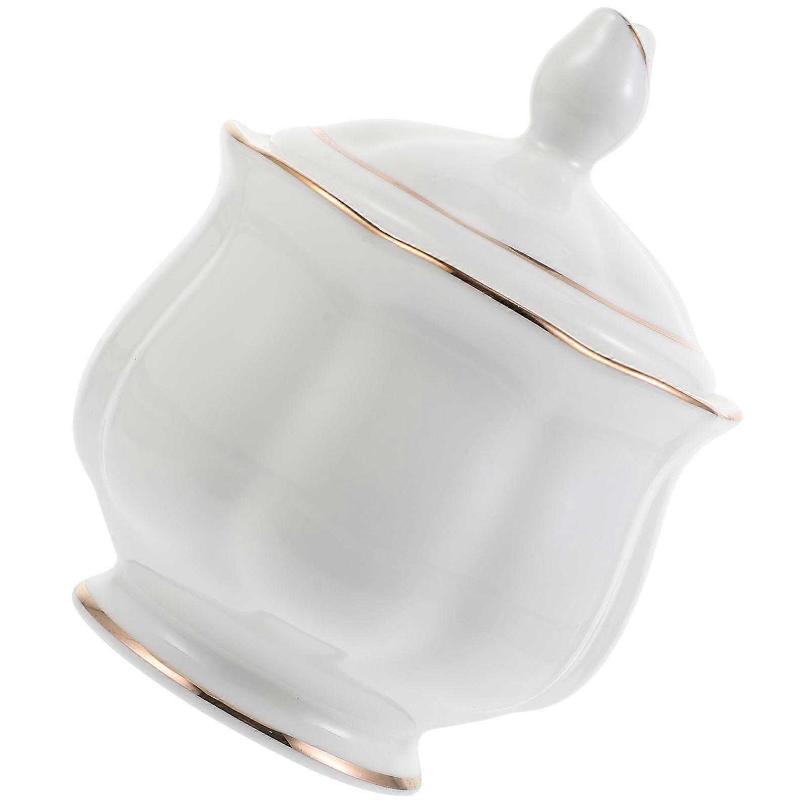 White Ceramic Sugar Bowl for Storage Use with Lid and Candy Plate