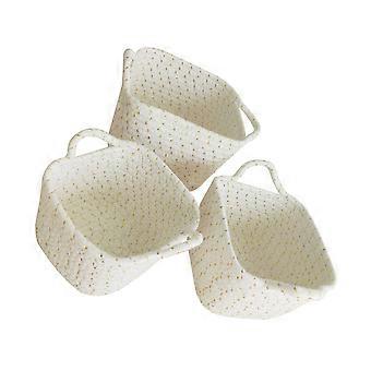 White Hand-Sewn Cotton Rope Storage Basket for Storage Use 1Set Set