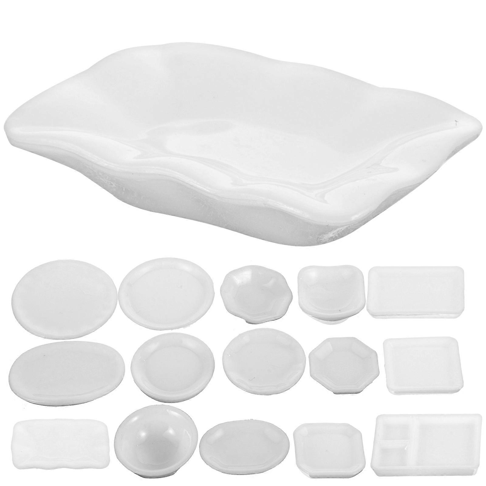 White Plastic Miniature Tableware Set for Doll House Decor with Realistic Shapes 24 Pieces