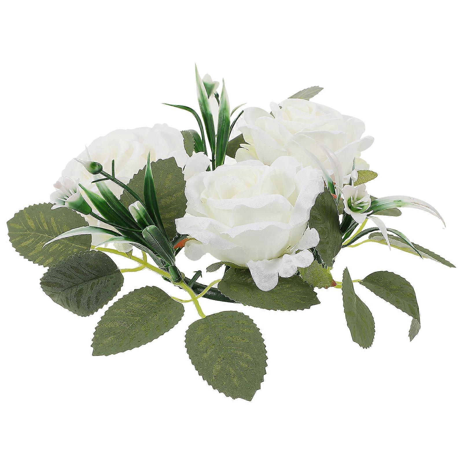 White Rose Candle Ring Artificial Wreath for Wedding Use 4Pcs