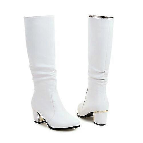 White Short Boots With Chunky Boots For Women Thin Autumn Winter Long Boots Simple Boots Plus Size 33-43